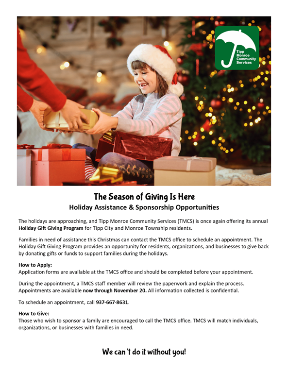 This Giving Tuesday, your donation to Tipp Monroe Community Services directly supports neighbors in need - from families facing emergencies to students striving for a brighter future.